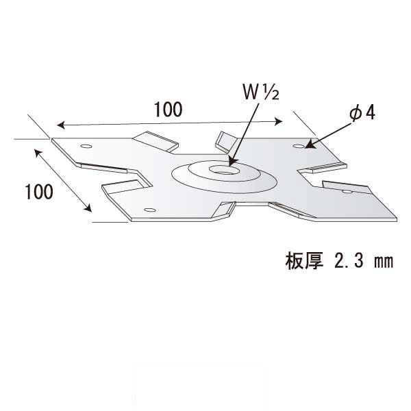 山形タップ付角ワッシャー2.3×100×100 W1/2(150個入)
